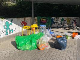 Von den Rund 200 Schüler:innen wurden 6-7 große Restmüllsäcke und 3 gelbe Säcke voll Müll in ganz Brilon aufgesammelt.